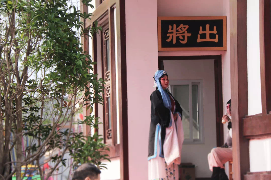 舞台上水袖翻飞、锣鼓丝竹;舞台下戏如人生,如痴如醉。这是十几天来小镇每天都在“上演”的真实场景。惨兮兮今日又为香莲落泪,雄赳赳杨门女将再出征。白头老人看戏过百遍,依然会被故事感动;黄发小儿懵懵懂懂,指着戏袍说好看。台下一声喝彩,台上万般变化。这是戏曲的光辉,也是舞台艺术的魅力。