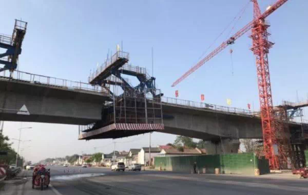 5月1日,上午7点在中铁18局承建的濮阳二标段看到,箱梁已经架设到第527号桥墩,还有12榀就可以到达跨S215连续梁的515号桥墩,大约需要一星期时间。