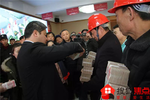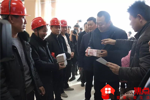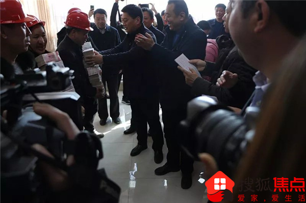 华信置业董事长曹为民把工资送到农民工手中