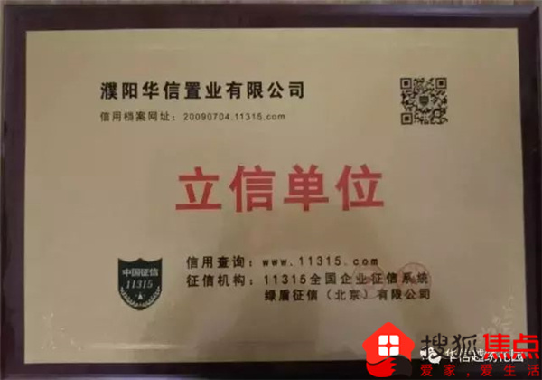 诚信是中华民族的美德,也是治国之本、立业之道;濮阳华信置业有限公司秉着以诚信为立足之本,被评为“立信单位”,被授予各项荣誉称号。
