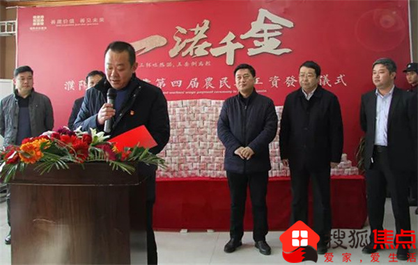 莅临此次农民工工资发放仪式的有常务副县长孔伟同志,副县长赵丹同志,住建局局长李玉民同志,人事劳动局局长刘希乾同志,濮阳华信置业董事长曹为民先生,濮阳市天鹰建设有限公司董事长韦中祥先生等各位领导。