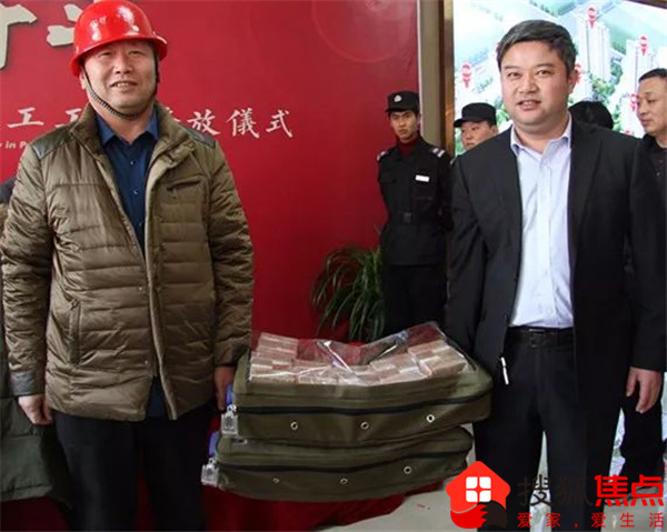 县人民政府副县长赵丹、县住建局局长李玉民莅临现场为农民工发放工资
