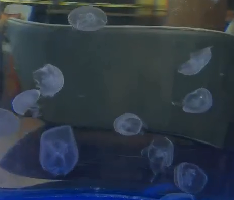 海月和赤月水母水中摇曳飘舞就像一顶顶圆伞近距离观察它的呼吸和细小动作一抓一松,简直美skr!