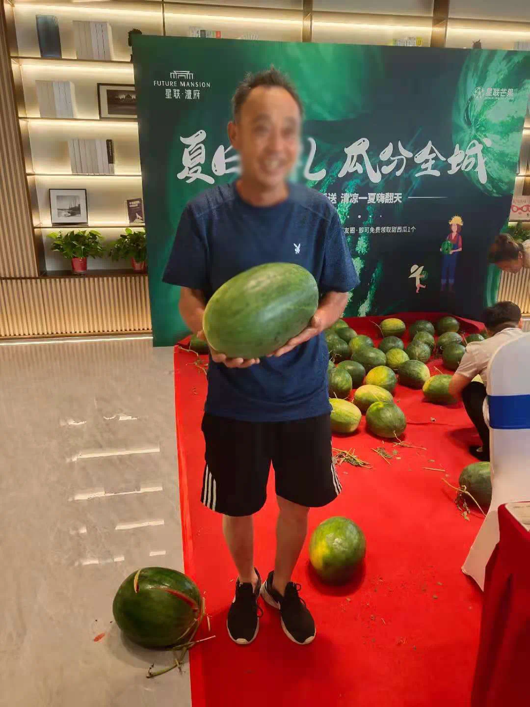 场面相当火爆,领到西瓜的朋友都兴奋不已