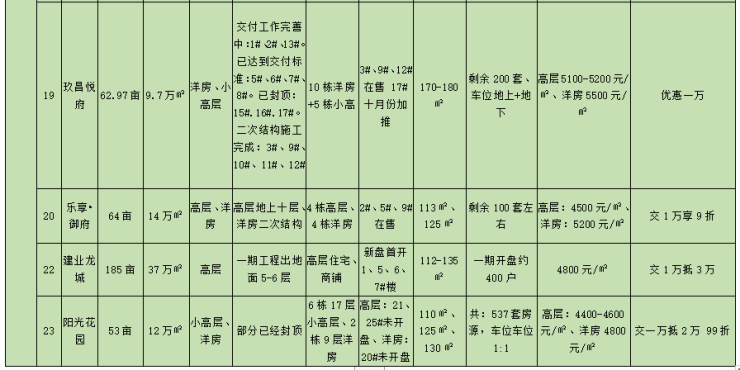 濮北新区在售住宅项目实收均价基本在7500元/㎡;主要集中在卫都大道一带;碧桂园作为品牌开发商,开发住宅项目基本为区域标杆,以精装房为主,均格在8300元/㎡;其中建业品牌项目,均价在为8000元/㎡左右。