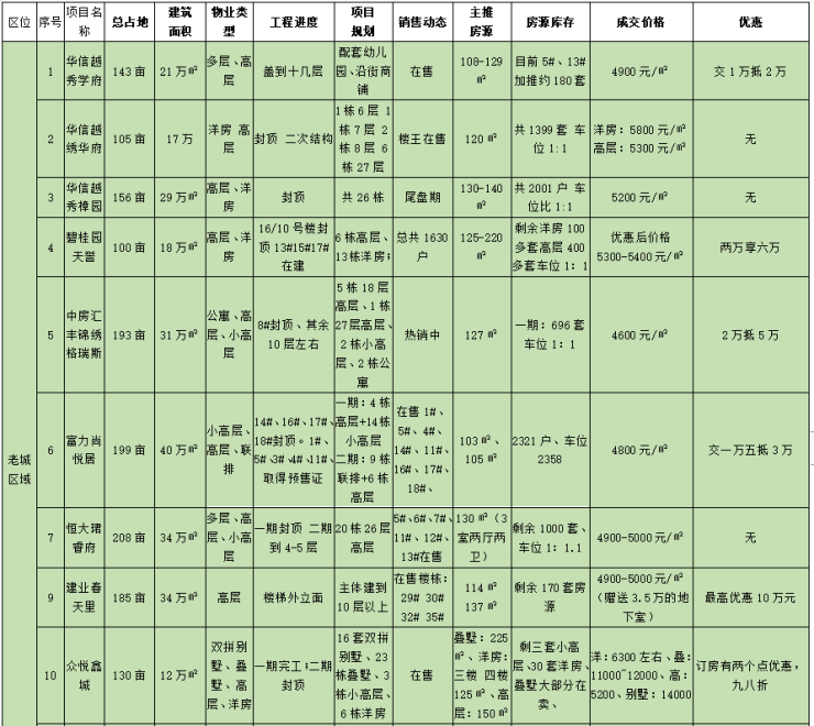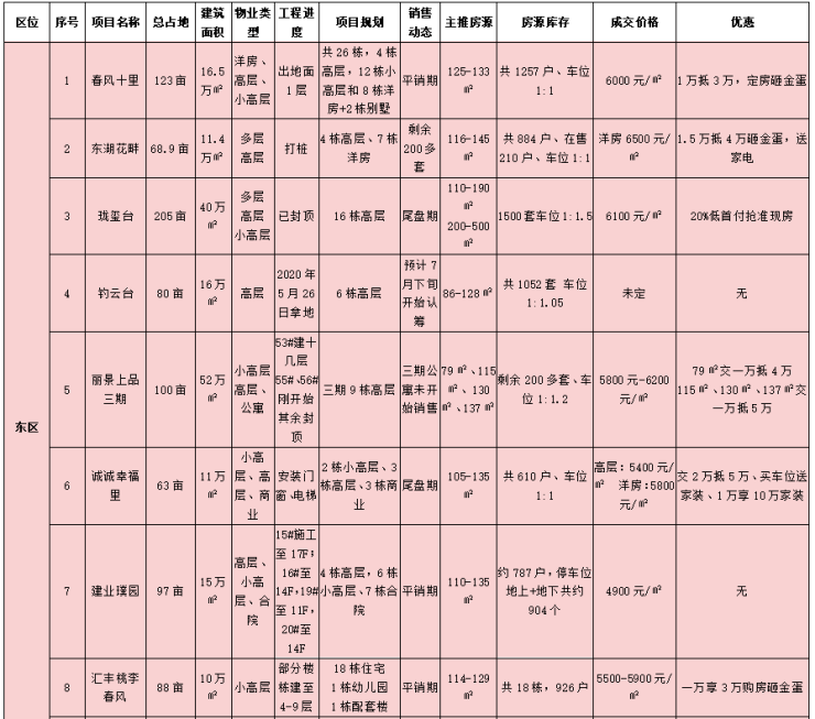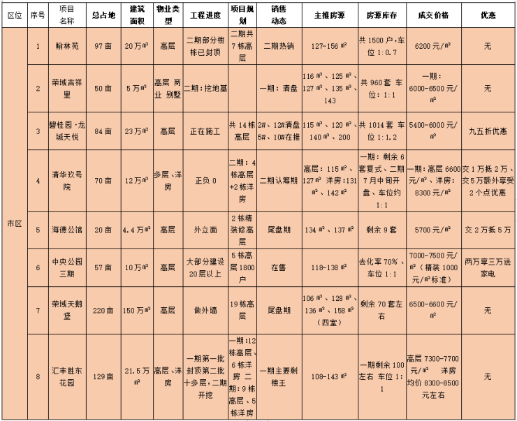 市区在售住宅项目实收均价基本在6200元/㎡;基本为老盘加推,2020年市区新增住宅用地57543.44㎡,未来规划如何还要看是否迎合市场需求。