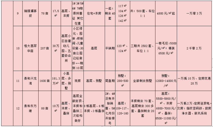 濮东新区在售住宅项目实收均价基本在5800元/㎡;主要集中在新东路一带;泰和兴龙湾目前以别墅为主,价位较高在12000-14000元/㎡之间;其他周边项目,大多单价在为5500-6000元/㎡之间,新房市场涨幅稳定!
