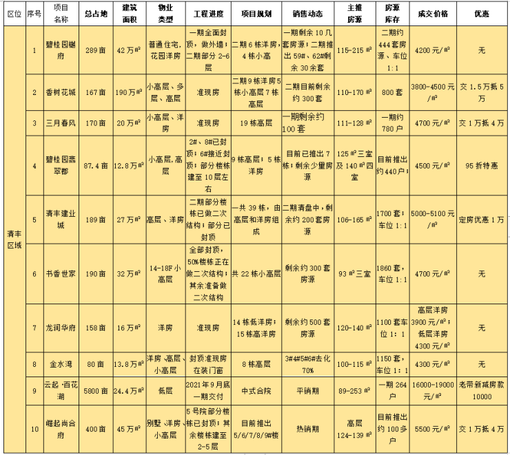 清丰县在售住宅项目实收均价基本在3900元/㎡-4500之间;主要集中在京开大道沿线板块;其中崛起尚合府产品主要为住宅项目,单价为5500元/㎡。