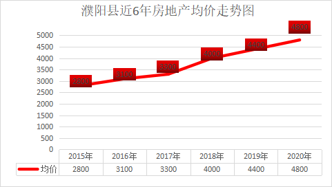 濮阳县房地产市场近五年整体均价曲线图可以看出:濮阳县房地产市场从2015年至今,房地产住宅市场价格较为平稳提升,但到2017年至18年整体涨幅较大;2020年至今,濮阳县新项目的加入,老项目加推以恒大、华信为代表,均价为濮阳县较高5000元/㎡。