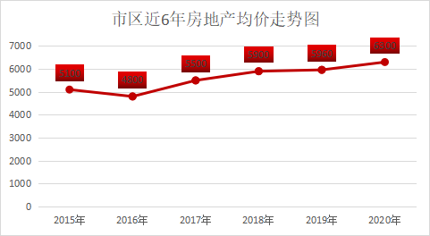 市区房地产市场近6年整体均价曲线图可以看出:市区房地产市场从2016年回落到5000以下,从2017年至今,房地产住宅市场价格较为平稳提升。