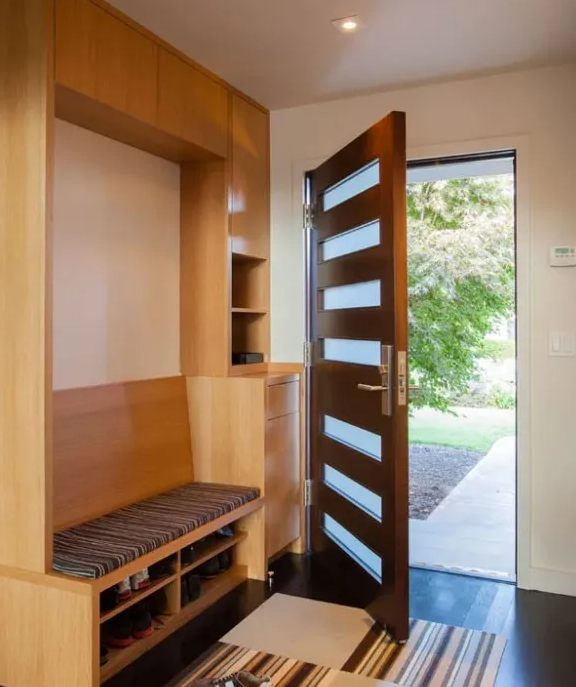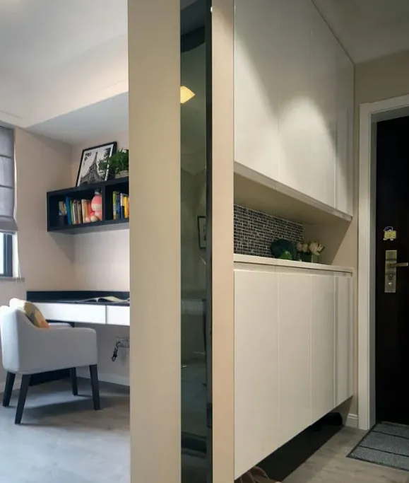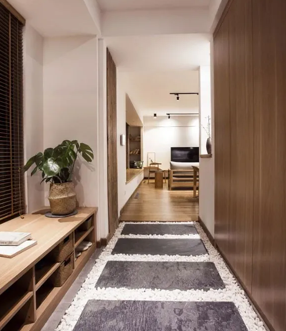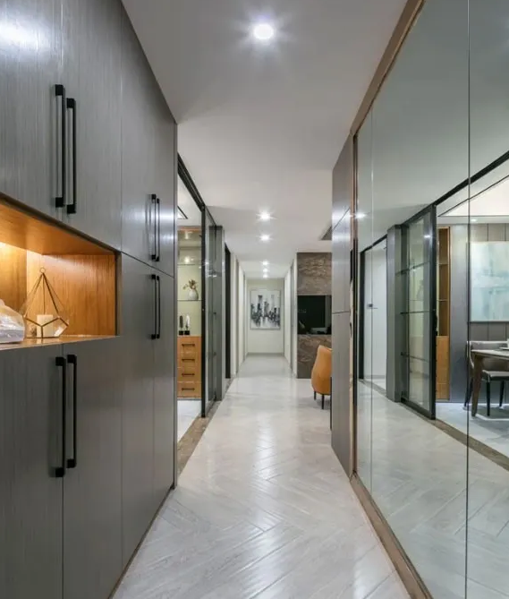 如果过道没有玻璃窗,那可以定制两排大鞋柜,能够提升家中的收纳能力。