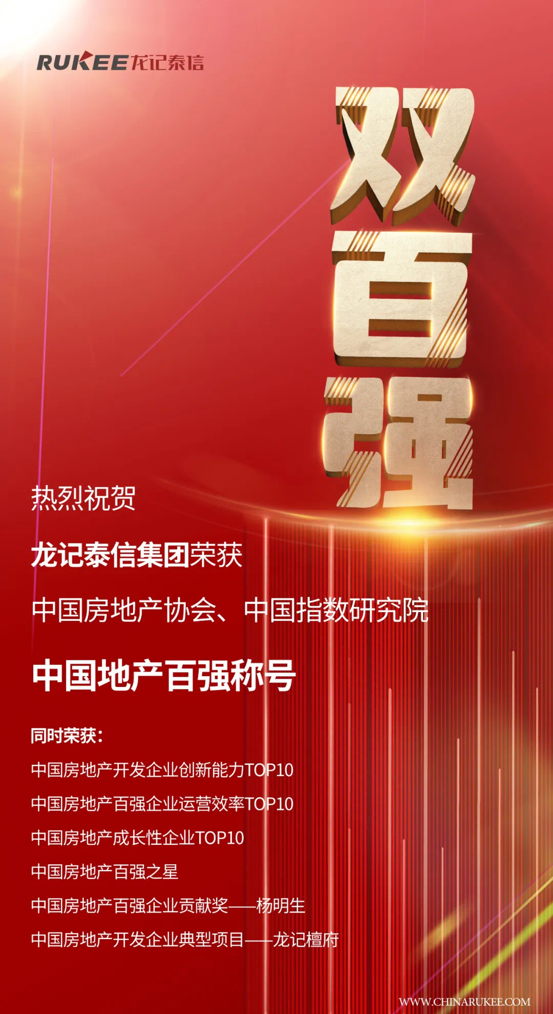 中国房地产开发企业100强中国房地产百强之星中国房地产成长性企业TOP10中国房地产百强企业运营效率TOP10集团董事长杨明生先生荣获中国房地产百强企业贡献人物