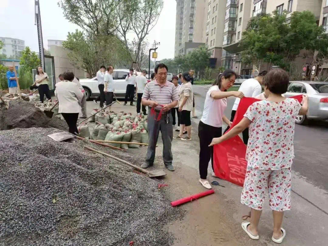 焦作·建业温县春天里小区经理崔婉莹,与小区全体员工暴雨中持续奋战,扛沙袋、堵地库,全力以赴,为业主筑牢安全线。