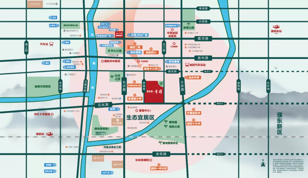 城市发展东扩南拓,项目位于幸福路小学旁,距离万嘉360、丹尼斯等成熟商圈约3公里,项目周边学府云集,公园环绕,近享濮阳市中医院、油田总医院的等优质医疗资源。