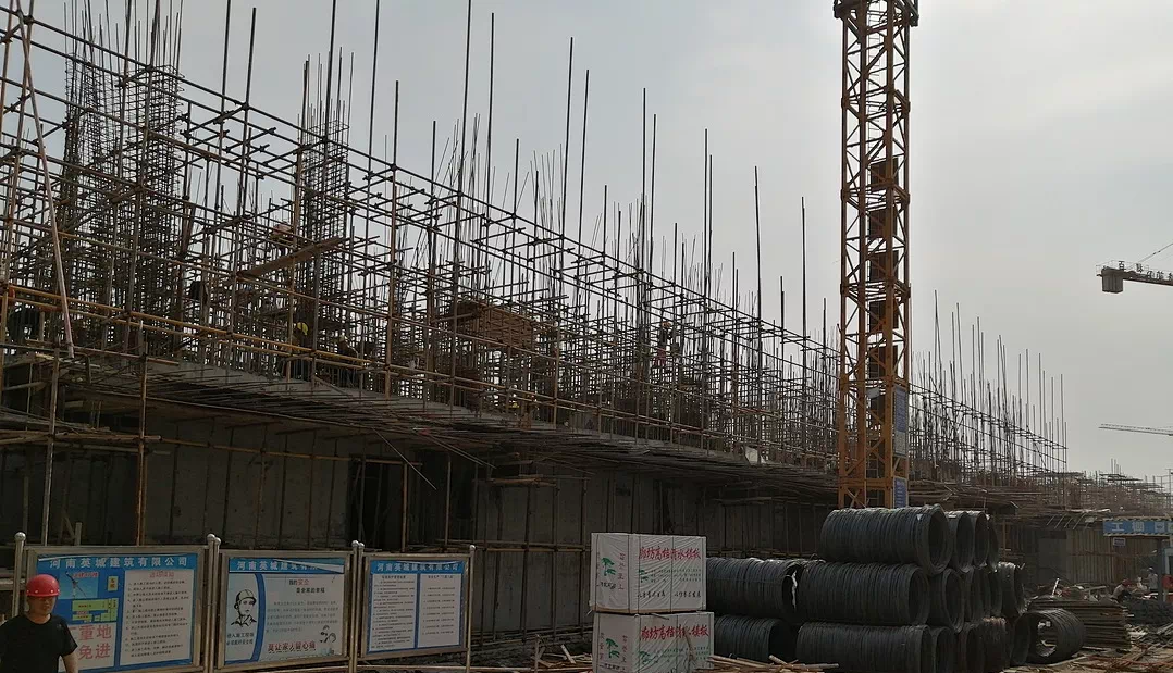 45#楼一层墙柱钢筋绑扎完成,顶板钢筋开始施工