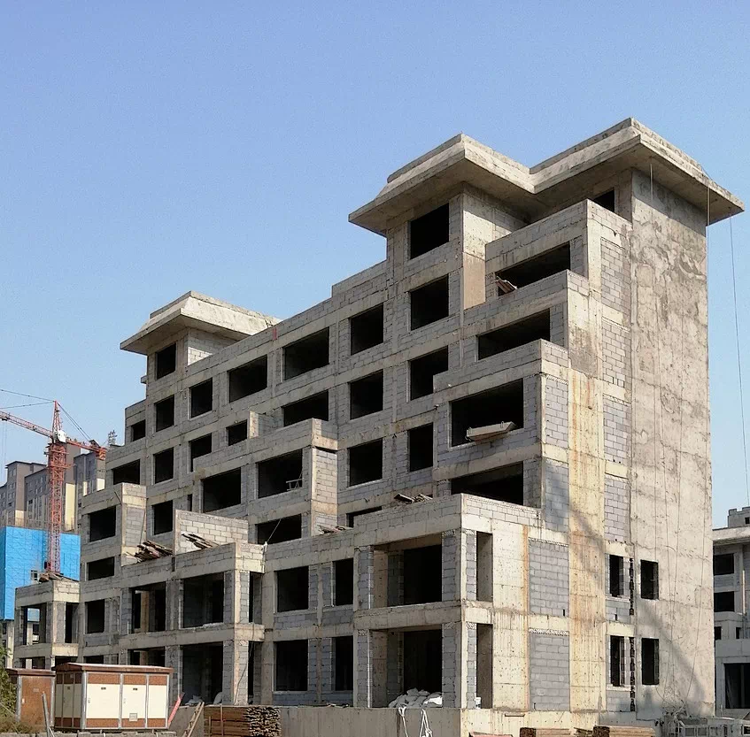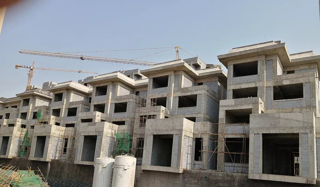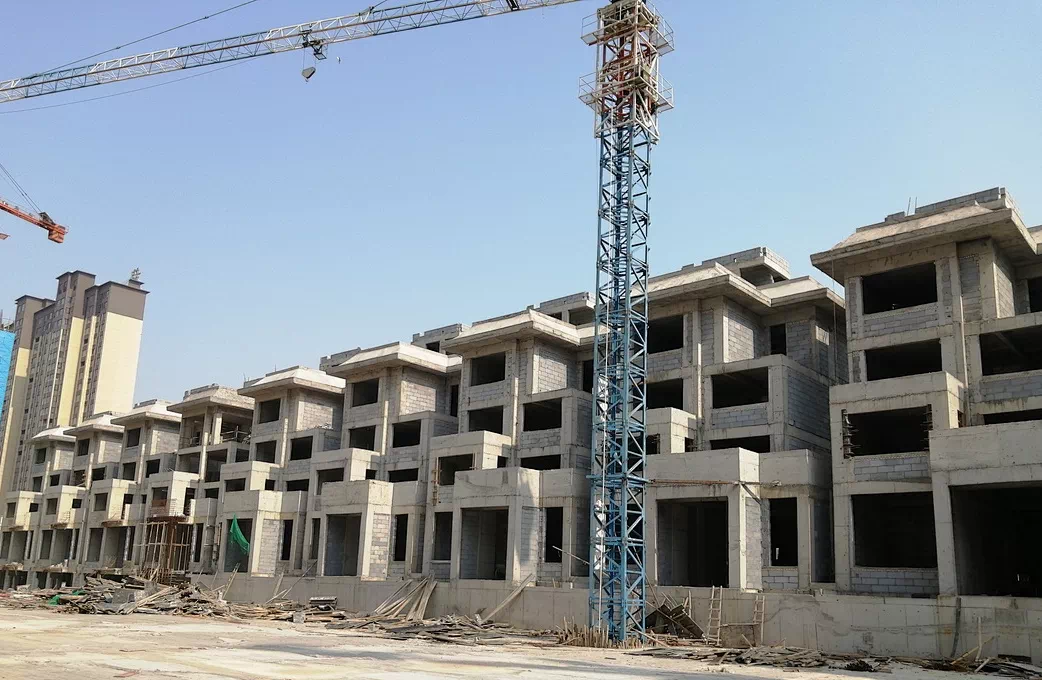 28#楼外墙抹灰施工完成,内墙石膏粉刷正在施工