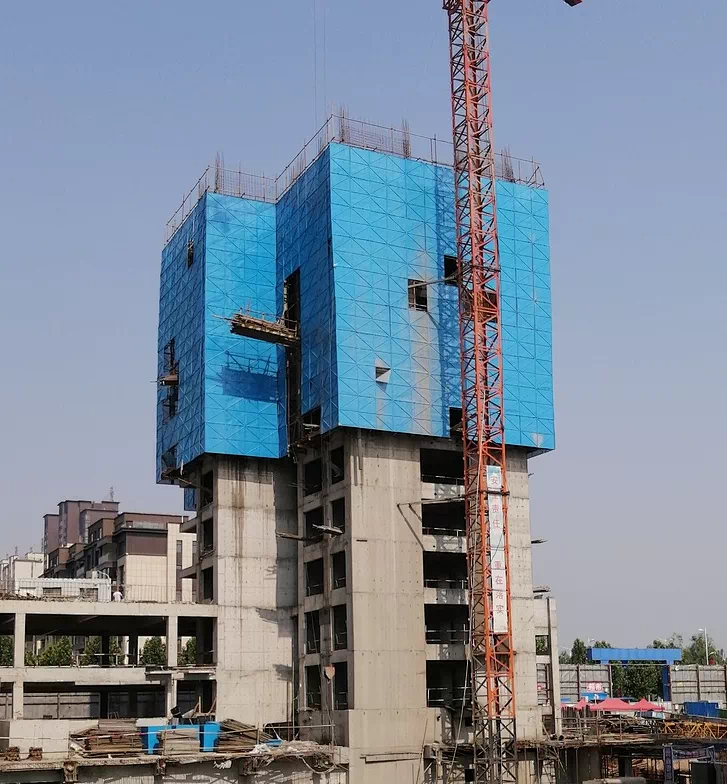 31#楼二次结构已施工完成,外墙抹灰开始施工