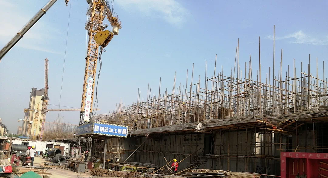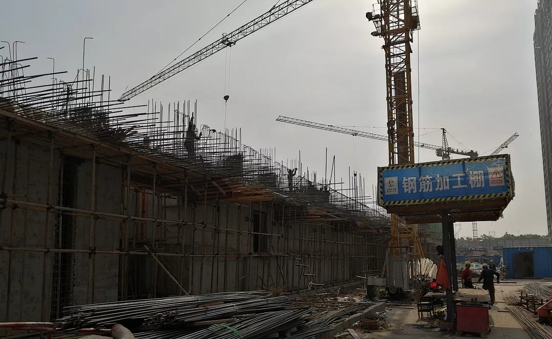 41#楼主体结构±0.00已施工完成,一层墙柱钢筋绑扎
