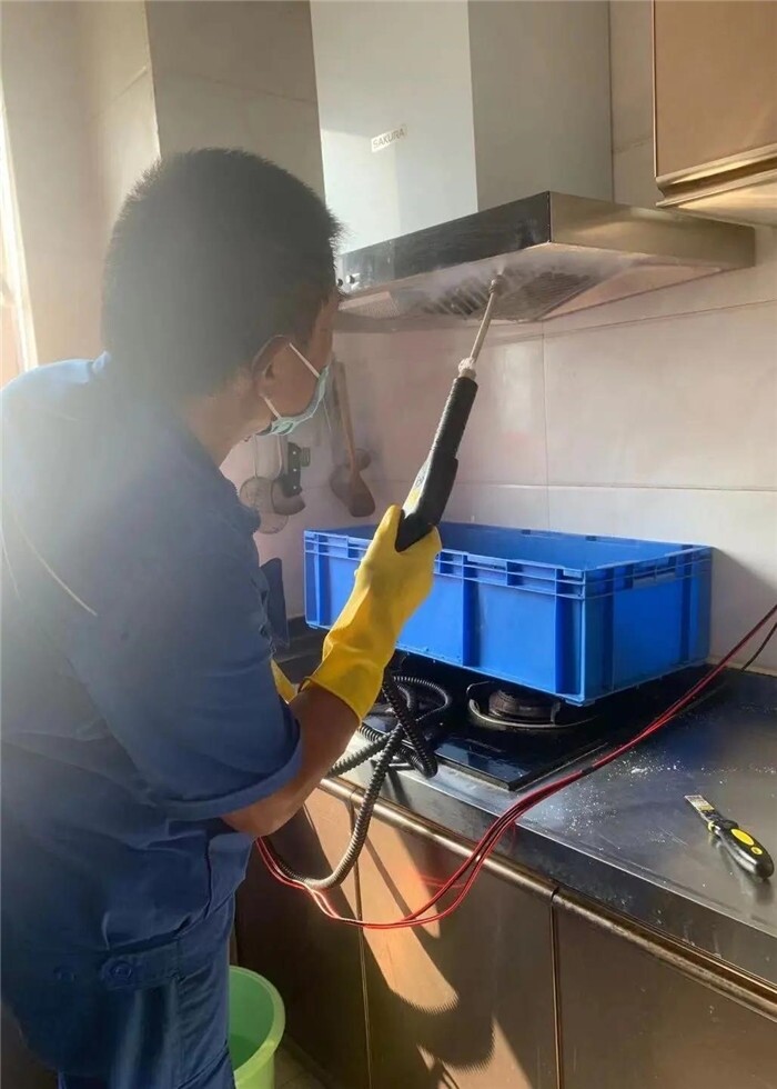 抽油烟机的清洁维护是平时家里头疼的问题,建业·天筑服务人员用专业的清洗设备为业主认真清洗,确保不留下任何污渍。