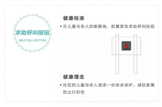 于社区通道、全龄活动区等人员密集处设置紧急求助系统,如遇突发情况,物业可通过周边监控摄像机,及时了解现场状况并展开救助。