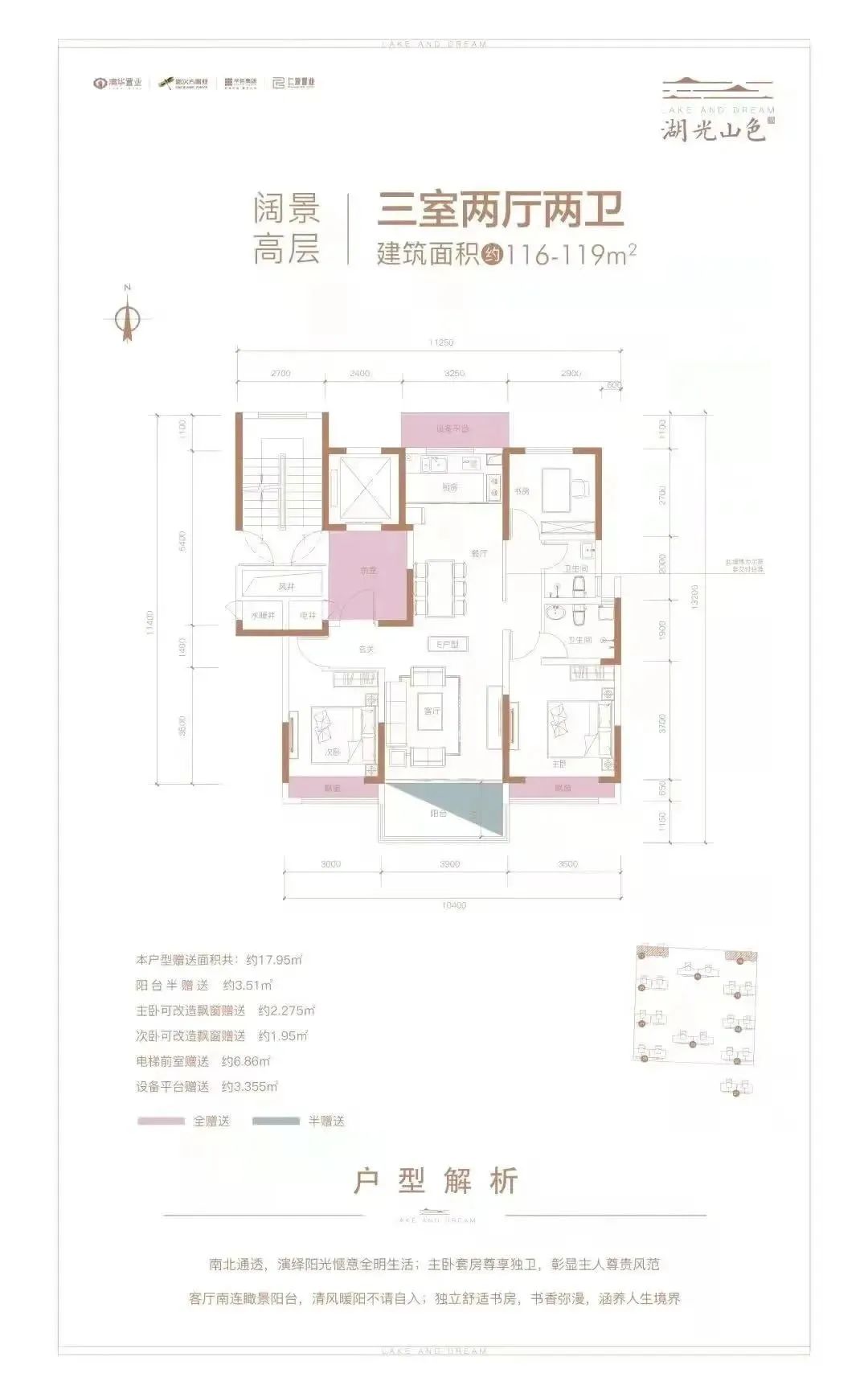 阳台半加赠,飘窗、设备平台、电梯前室等空间全加赠,总加赠空间多至约23㎡(不计入建筑面积)。洋房享一梯两户归家礼遇,高层更享一梯一户尊属空间,悦享美好生活。