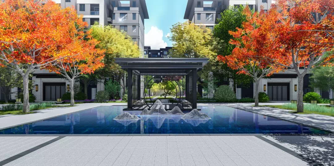 在外立面、建筑屋顶的处理上,运用对称均衡的手法获得稳健典雅的气势,通过底部基座的庄重浑厚,营造挺拔向上的建筑质感。在新中式美学与现代建筑艺术的优质碰撞中,将人居生活与文化美学融汇贯通,为城市菁英们雕琢一处独具格调的生活场所。