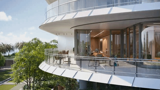 Eighty Seven Park位于迈阿密海滩的一个公园内,是伦佐·皮亚诺在美国设计的排名前列栋豪华公寓,建筑直面一望无际的大海,周围被绿植包围,360º环形大阳台设计,采用悬挂式的楼板结构,各层的玻璃幕墙让视线毫无阻碍,犹如漂浮在海上的玻璃塔。
