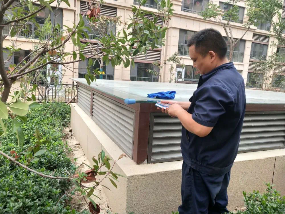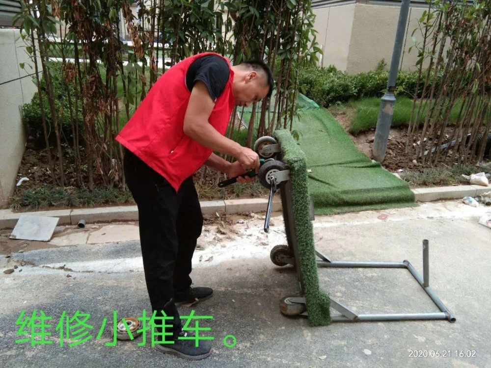 汗如雨下,但是维修师傅从不说一句苦叫一句累,为了使园区变得更加舒适,我们一直在行动的路上。
