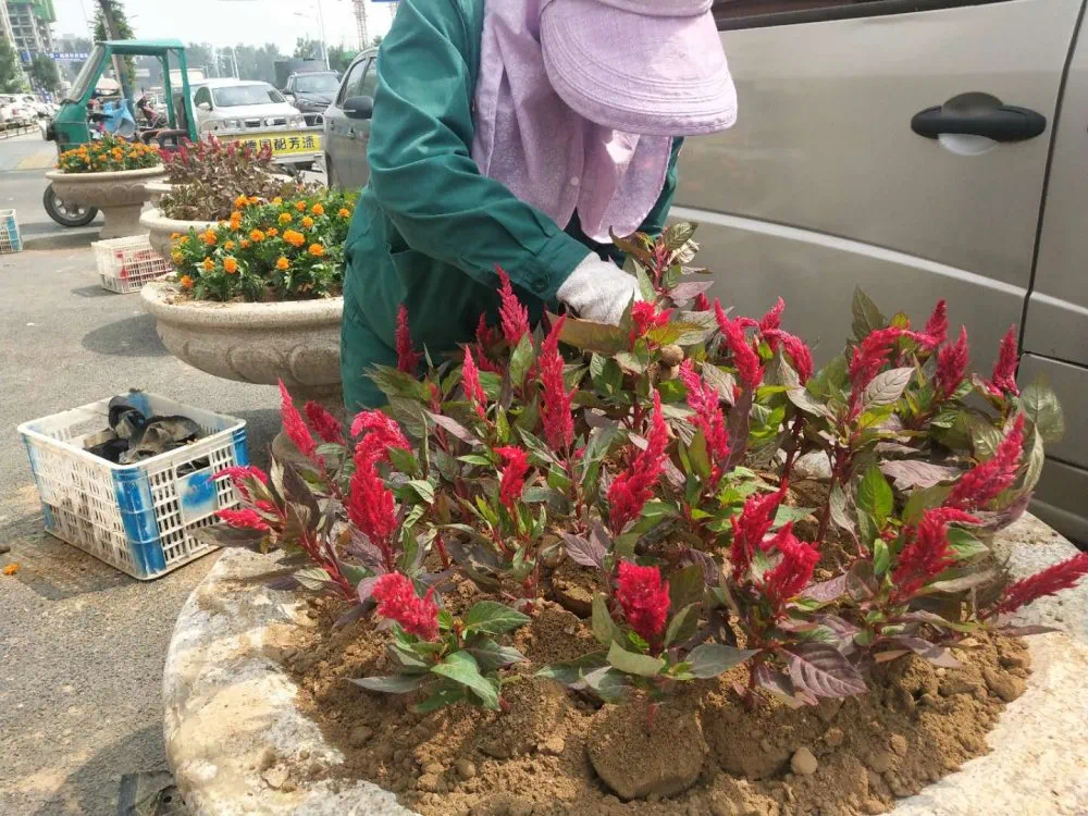 本月环境部对东大门,北大门花坛进行花草种植,清洗园区道路,清理采光井顶部卫生。