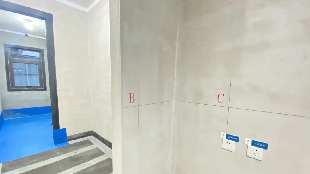 三遍防水涂料分层涂刷,三重防护,防止渗漏。阴角处做砂浆R角,做好导流、排水,避免阴角积水;管道根部随吊洞用细石混凝土一体浇筑的止水反坎,有效防止积水从管道根部下渗,这样的防水工程,让楼上楼下,都能无忧享受高质量居住体验。