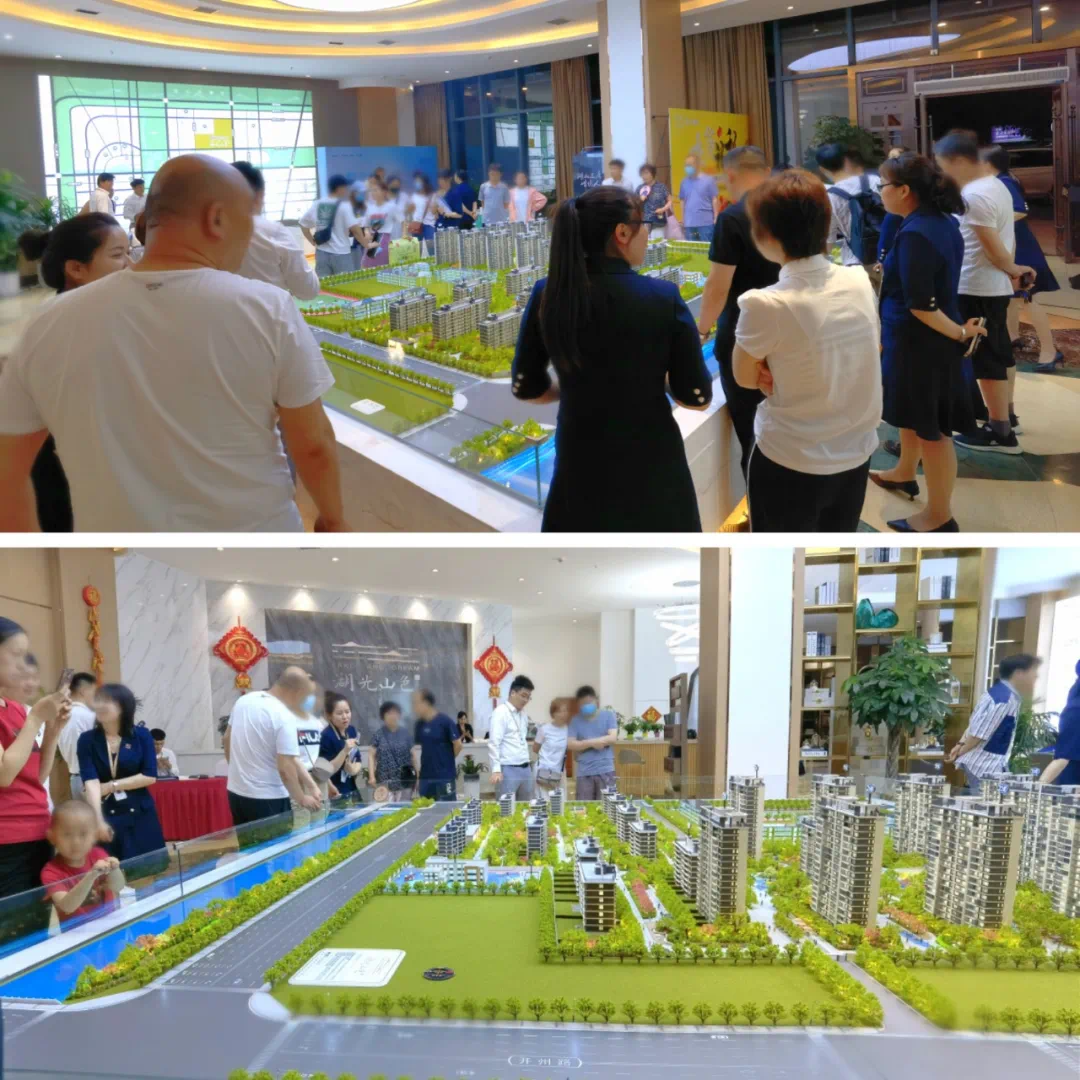 客户们纷纷被展厅内崭新的沙盘所吸引