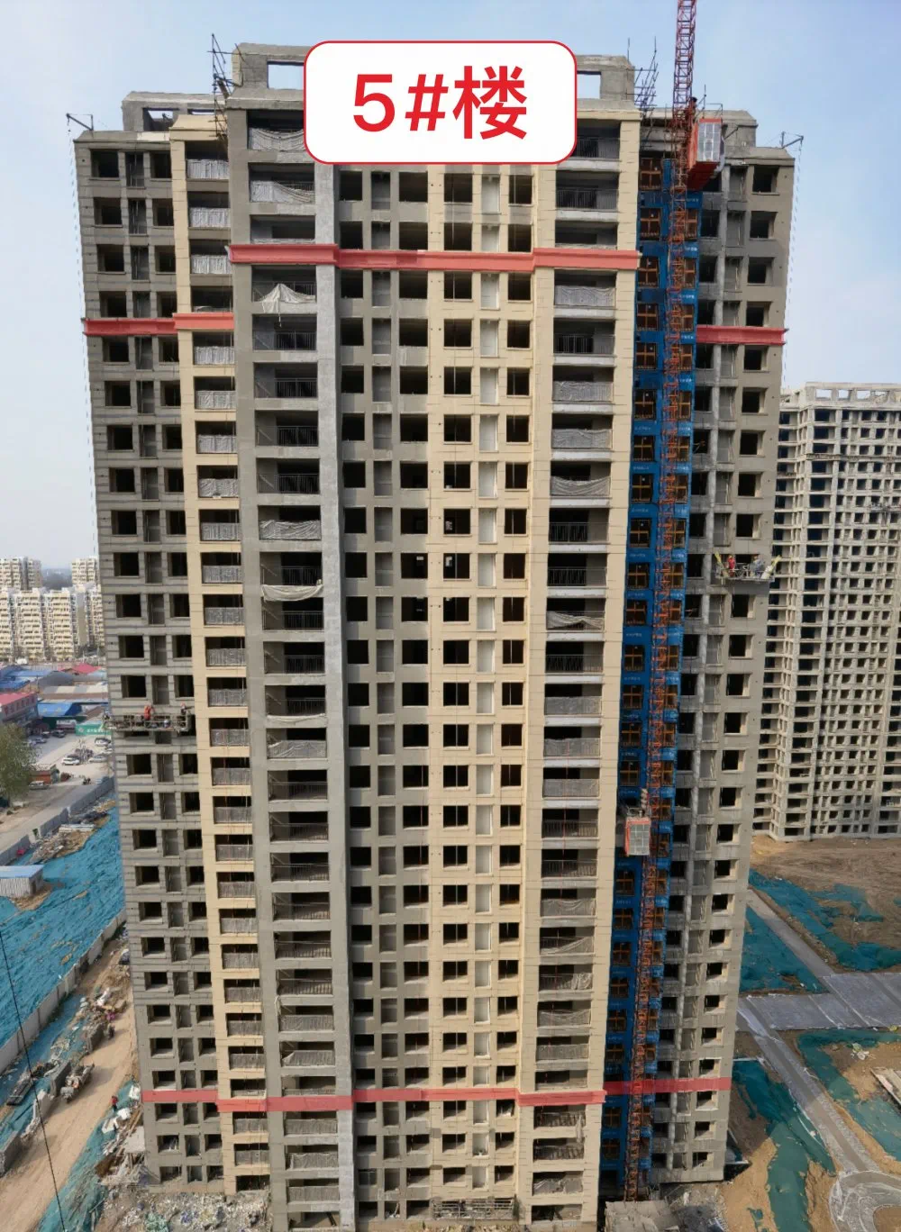 6#楼砌体完成,内粉完成60%,外保温完成90%。
