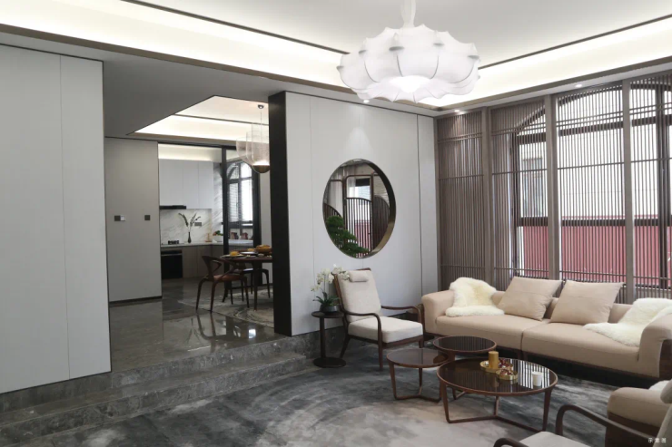 有泰·天璞的室内空间多角度与花园连通,方便景色共赏的同时,室内与室外的家人可轻松互动,奠定法式轻松浪漫基调,营造休闲舒适的氛围。围合的沙发区是家人情感交流的场所,空间通透而温馨,见证一家人每一刻的欢聚时光。