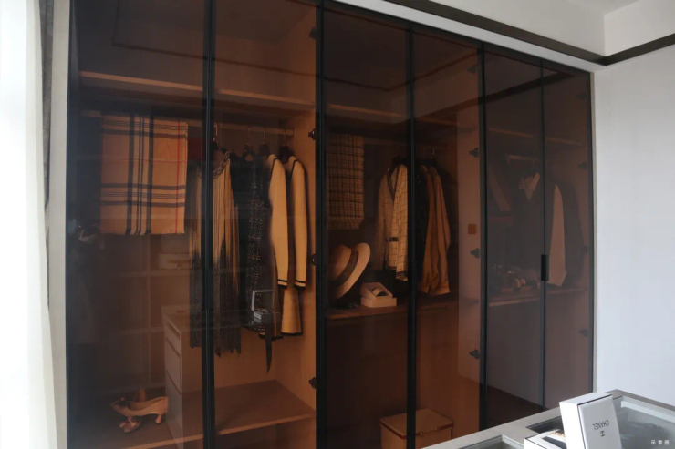 将主卧设计成连带衣帽间与独卫的大套间,整体符合别墅的配置。卧室空间与其他不同休闲空间的搭配,是经过仔细考究的舒适组合。比如,衣帽间中不仅有衣物,还放置着各类床上用品、家居用品,甚至包括首饰等贵重物品,隐私性自然不容忽视,出于此考量便将衣帽间与卧室相邻配置为套房,方便拿取的同时,有利于营造有序的收纳空间。