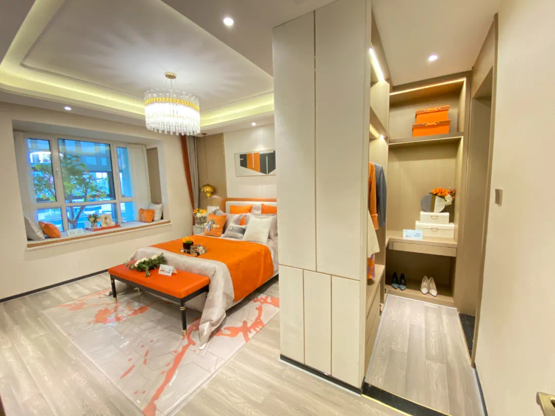 每个女人,都有一个关于“衣帽间”的理想,这不只是纯粹的物质领地,更是精神的世界。四房空间打造一处阔绰衣帽间,装下女主人的四季,新款的包包、限量的高跟鞋、典雅的晚礼服等,走出房间便是华丽的登场;且套房主卧设计,集衣帽间、独立卫浴间、观景飘窗于一体,恰到好处的人居体验,给予无边界的舒适与尊崇。