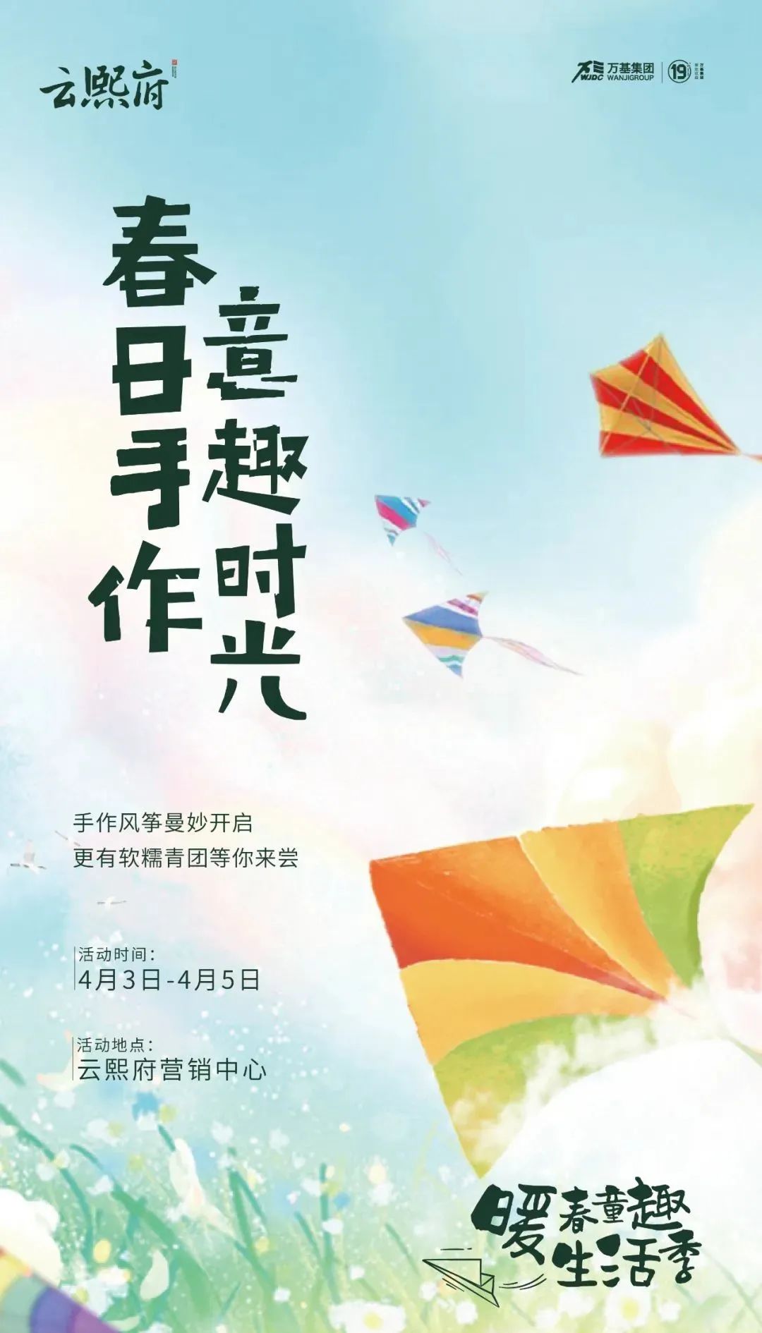 4月3日——4月5日 来云熙府营销中心 让我们一起重拾童年乐趣 在这个绿意盎然、肆意撒欢的春天 品尝美味,与风筝浪漫约“绘” 吧