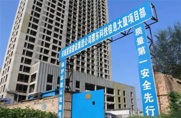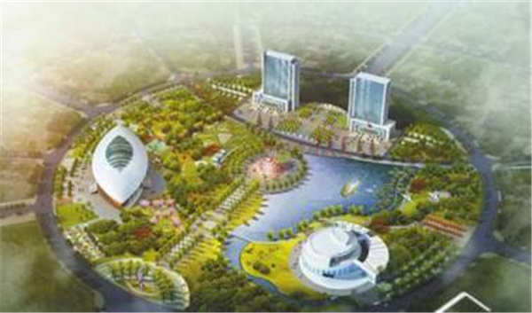 北面坐落着标志性建筑双塔楼,濮东科技信息服务大厦和濮东企业服务大厦,濮东科技信息服务大厦正在建设中,南边遥相呼应的是濮东会展中心和濮东文体中心。