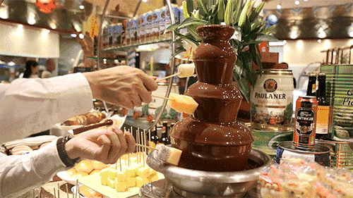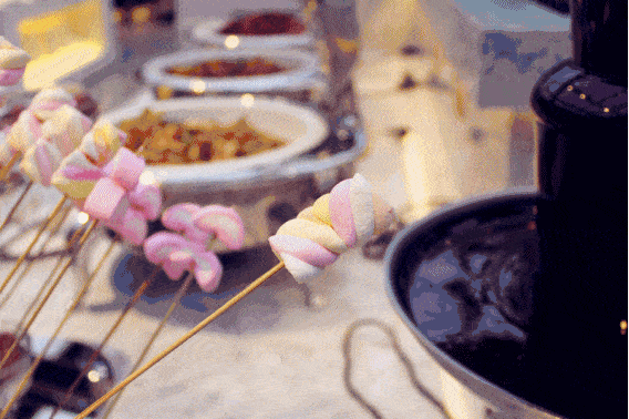 把冰淇淋、巧克力、水果搭配起来,做成火锅