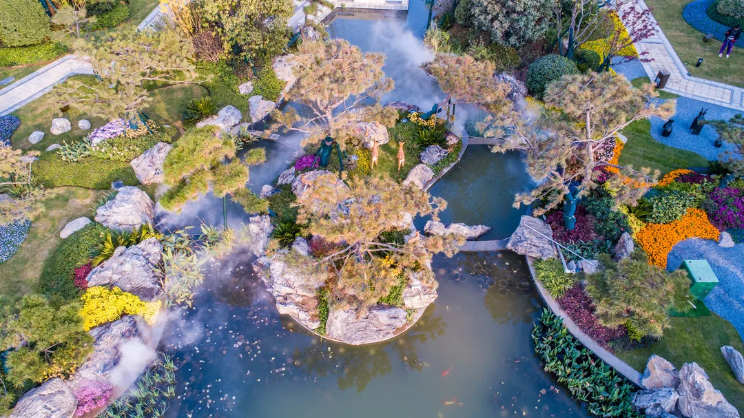 漫步松岛感受别样趣味想象在松岛之上多棵松树环绕周围云气飘绕如同人间仙境更有雕塑小品供您观赏来濮阳恒大珺睿府感受人间仙境之乐