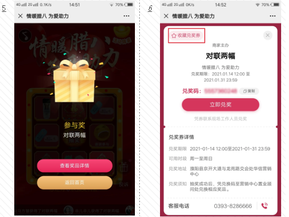5、点击查看奖品详情,生成兑奖券并收藏、收藏、收藏(一定要收藏到微信收藏夹)