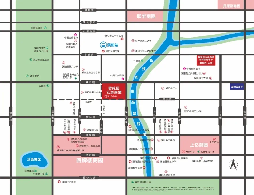 项目择址濮阳县城芯板块,紧邻城市中轴解放大道,约2公里即可畅达濮阳市区;北侧铁丘路,横贯东西,近享一城便捷交通。项目自身配备风情商业街,自衍繁华,周边汇聚濮阳上亿广场、四牌楼等商圈,一城优渥尽汇于此。社区自建幼儿园,濮阳县第七中学、濮阳县第二中学等多所学府环绕,文脉氤氲,起步即是栋梁之路。繁华商圈、醇熟配套、优质教育、先进医疗资源一应俱全,轻松执掌一城繁华。