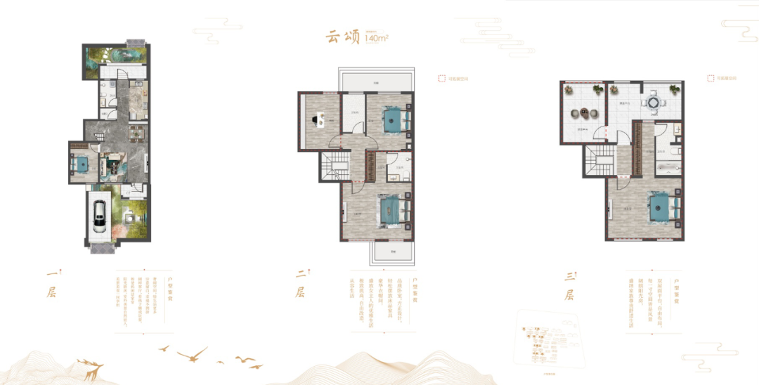 百变空间 焕新生活舒适建筑面积约116-186㎡联排墅院,多重可改造空间,得房率大于百分之百,全面满足不同家庭对美好生活的追求。