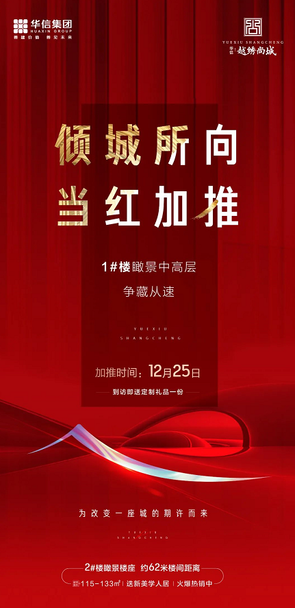 承载热力,再引聚焦,2021年12月25日华信·越绣尚城1#瞰景中高层,当红加推。