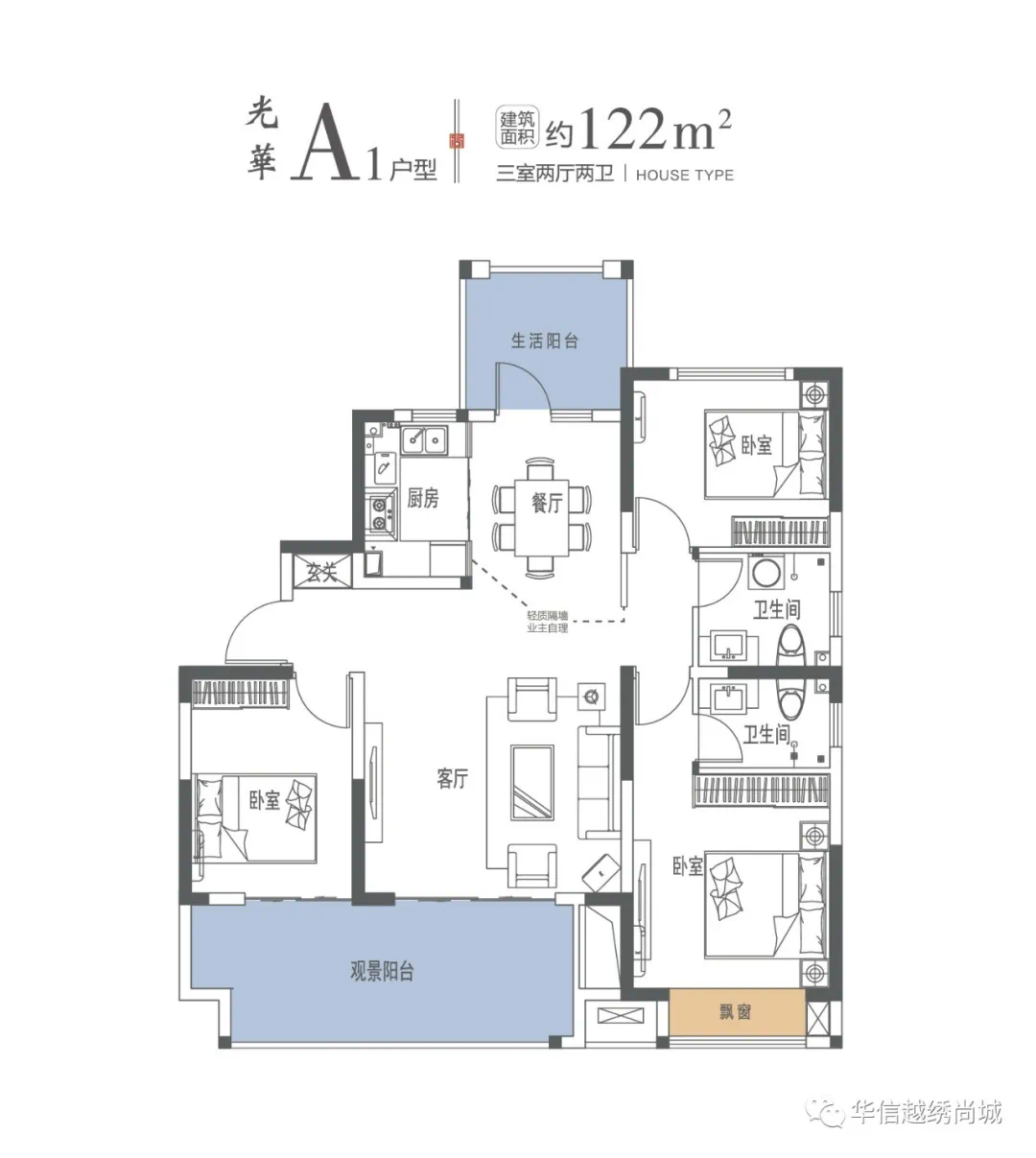 【华信·越绣尚城】匠心精筑品质户型,建面约123㎡轻奢三室,满足你对美好生活的所有向往,演绎温馨而舒适的居家生活体验,让幸福刚刚好!