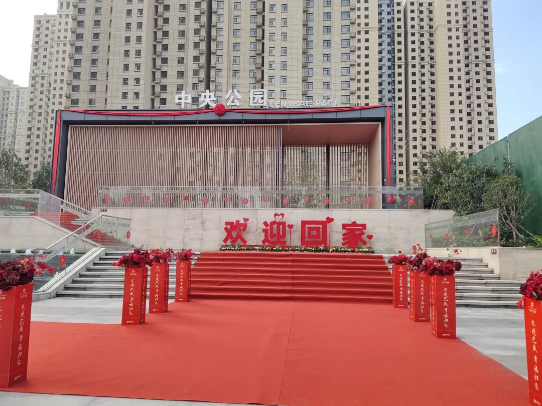 怀着对未来美好生活的期望,交房当天,业主早早来到现场,交房现场热烈而喜庆,让“回家”的路倍显温馨。一路铺就的红毯、喜庆的拱门、花团锦簇的迎宾花柱、精心布置的“欢迎回家”......构建出一幅移步异景的臻美生活画面,在气温渐寒的金秋十月,营造出暖暖的归心氛围。