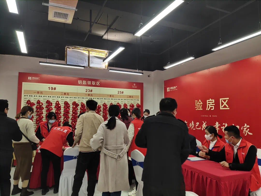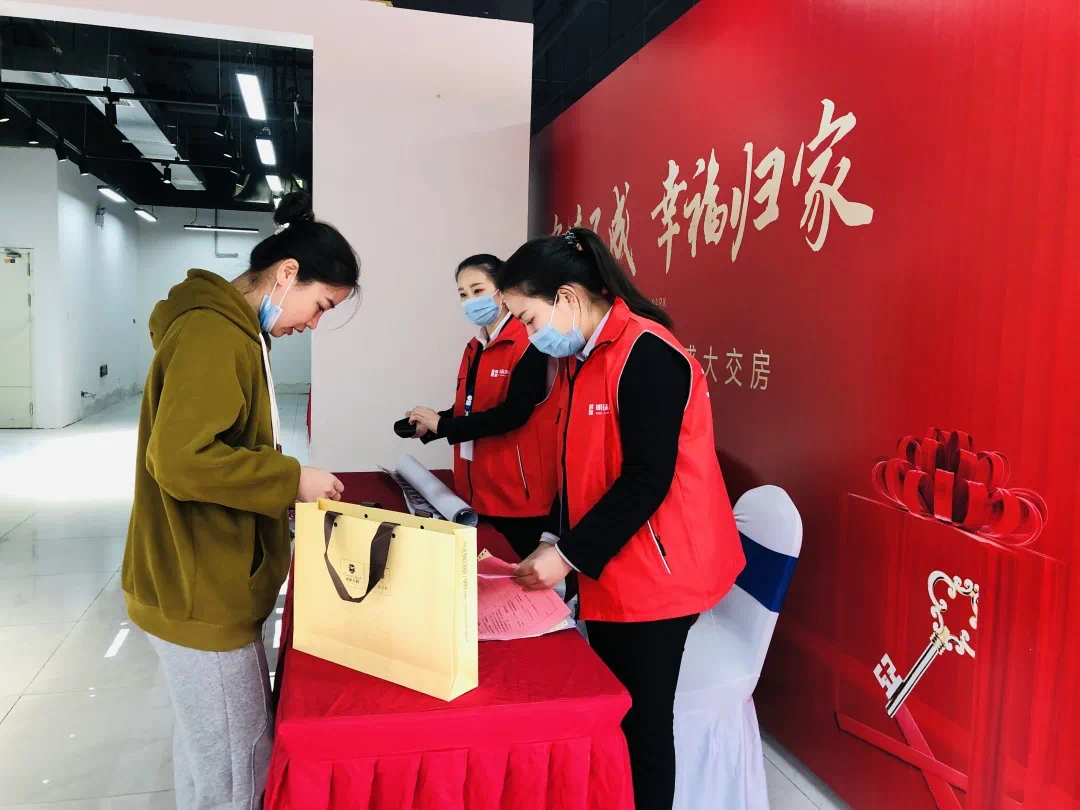 这是忙碌的一天,也是幸福的一天。每一位工作人员热情周到,为业主们耐心解答,从进门办理手续、看房验房、交接钥匙,每个环节都在工作人员“一站式”交房服务的引导下有条不紊地进行着。