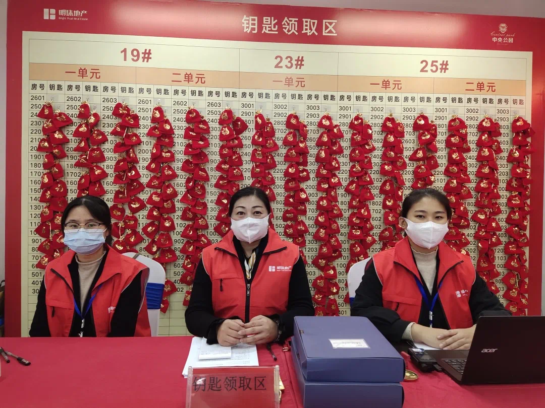 交房当天,明珠地产董事长高总也亲临交房活动现场,向圆满收房、领取归家钥匙的业主表示诚挚的祝贺,欢迎他们成为“明珠▪中央公园二期”大家庭的一员,再次彰显了明珠地产“以客户为本”的企业理念,让客户倍感温暖和安心。
