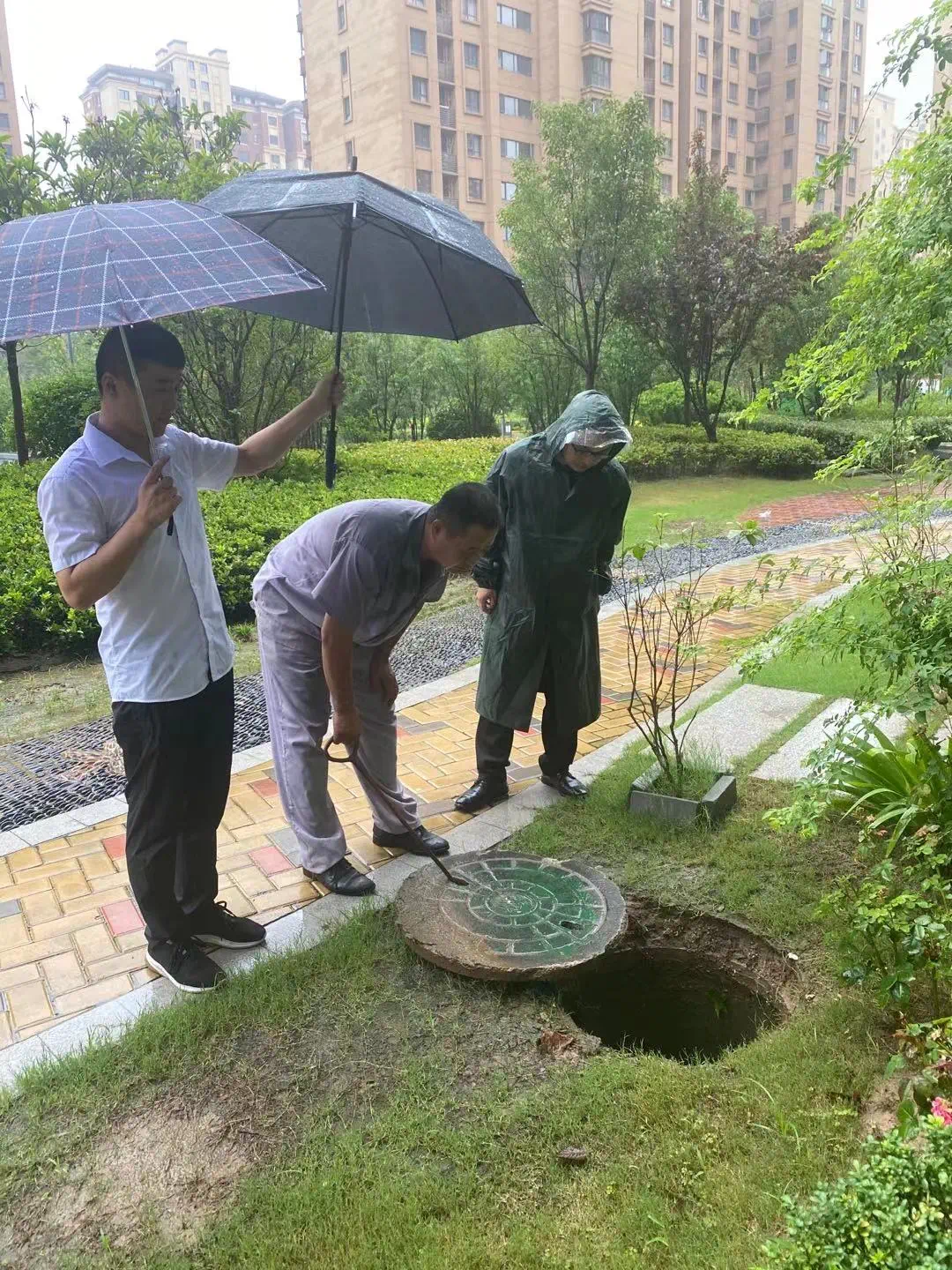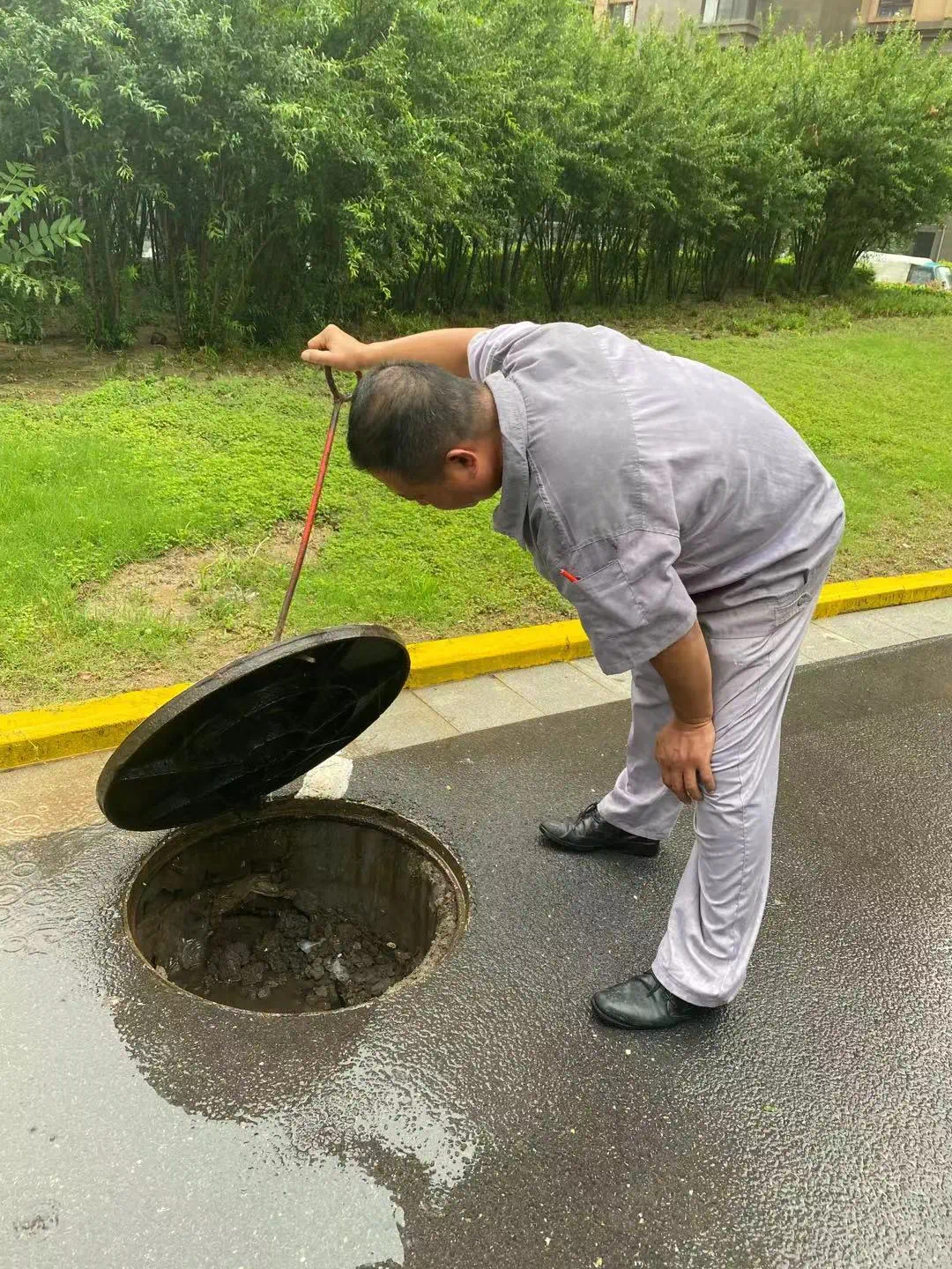 物业工作人员对雨水井、排水沟、排水口里面的杂物进行巡查清掏,防止树叶及杂物堵塞造成排水不畅,做到防患于未然及时排除险情。
