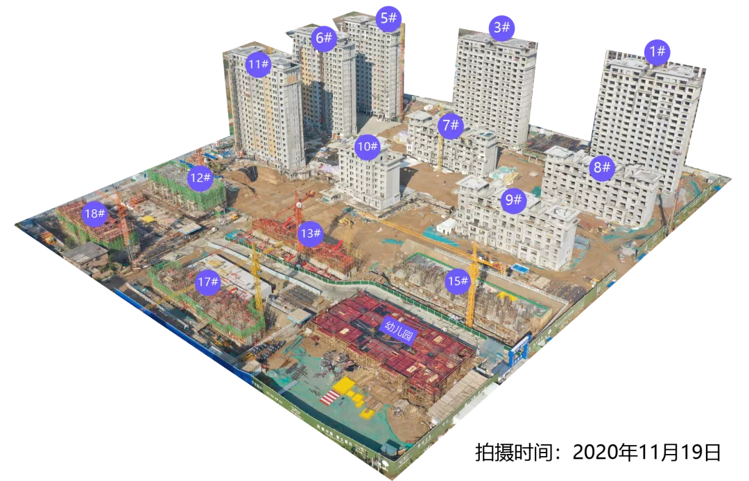 1#楼、2#楼、3#楼:分别为主体一层施工、主体负一层施工、主体二层施工;