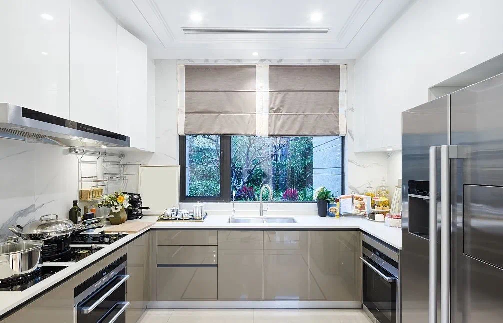 在外出就餐不方便,不允许堂食的日子里,大家逐渐回归厨房,煎炒烹炸,大展身手。一天研究一个新菜谱,隔两天就在家涮个小火锅。壹号院三种户型打造U型厨房布局,取、洗、切、煮,流畅动线,助您优质烹饪出一道道佳肴。餐厨相邻,能让碗碟排名前列时间上桌,美味佳肴无须等待。